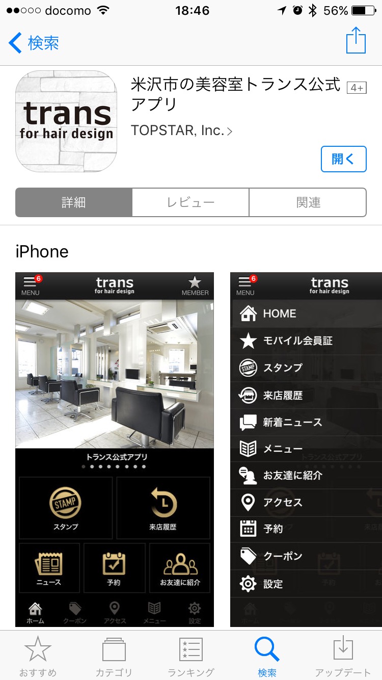 iOS:https://itunes.apple.com/jp/app/米沢市の美容室トランス公式アプリ/id1207141411?l=ja&ls=1&mt=8